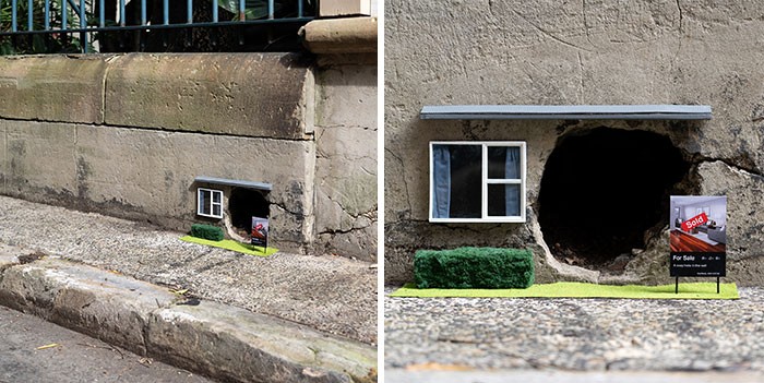 Jego prace są proste i pomysłowe. Szczelina w murze staje się małym teatrem „dla karaluchów”, a dziura w chodniku miniaturową bramką odlotów na lotnisku. Te małe niespodzianki wtapiają się w miasto i zamieniają codzienne miejsca w coś zabawnego i nieoczekiwanego.