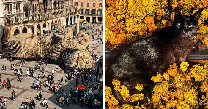 W tej czwartej części swojego popularnego projektu Matt wplata ogromne, puszyste koty w codzienne sceny – drzemiące na dachach, blokujące ruch uliczny lub swobodnie przejmujące parki i stacje benzynowe. Efekty są zarówno surrealistyczne, jak i urocze, pokazując, jak wyglądałoby życie, gdyby nasi koci przyjaciele rządzili miastem (dosłownie).