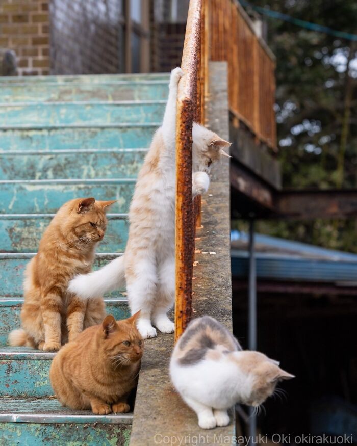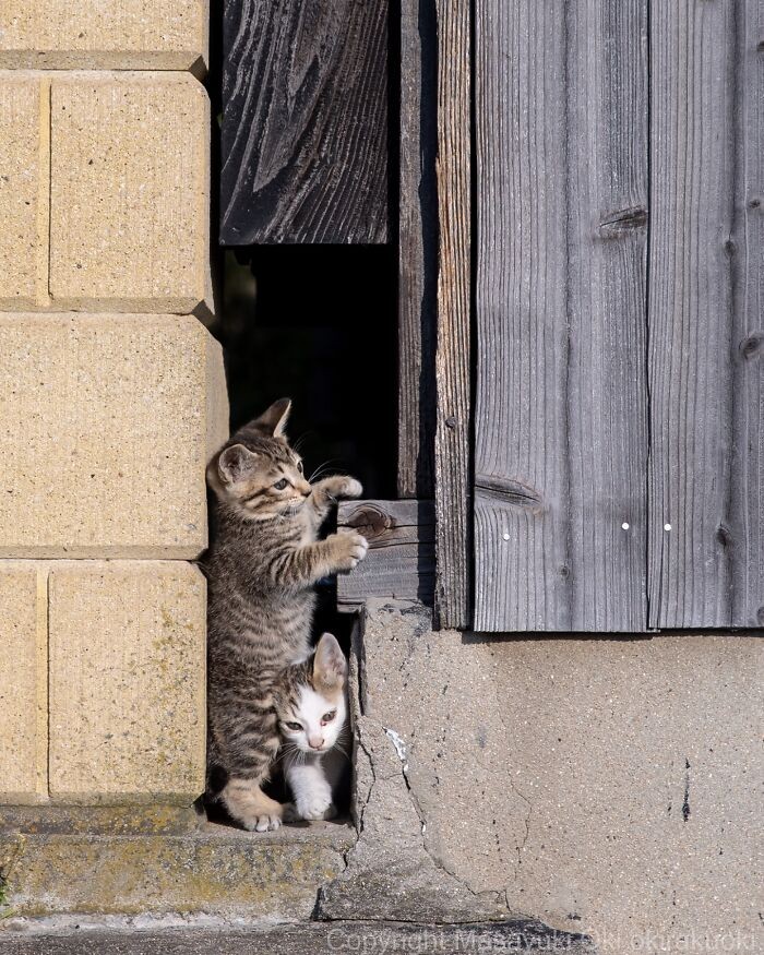 Masayuki Oki, fotograf z Tokio, spędził ostatnią dekadę na fotografowaniu kotów ulicznych z rodzajem surowej czułości, która zamienia każde zdjęcie w historię. Nie fotografuje tylko kotów wylegujących się na chodnikach lub szukających przekąsek, nie, w rzeczywistości dokumentuje ich osobowości, cichy dramat ich życia i sposób, w jaki przyciągają uwagę bez wysiłku. „Czasami czuję, jakby koty mówiły mi, żebym uchwycił moment!” – mówi, traktując je jak mentorów fotografii, ucząc się przewidywać ich ruchy i nastroje.