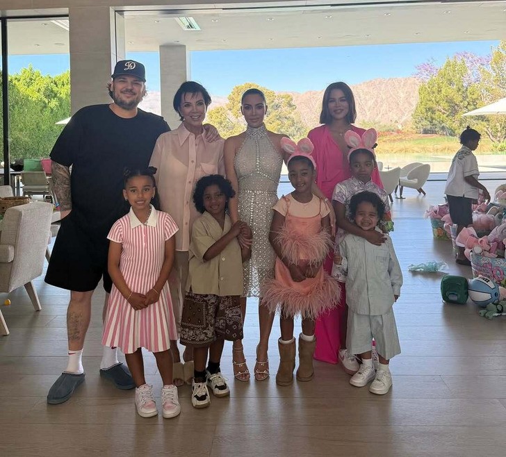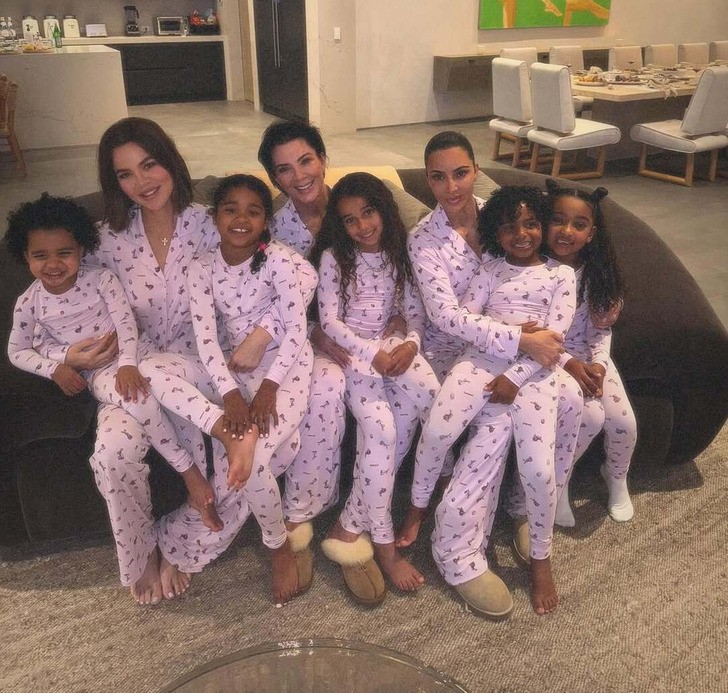 Na zdjęciu pojawiła się również trójka młodszych dzieci Kim Kardashian z byłym mężem Kanye Westem — 9-letni Saint West, 7-letni Chicago West i 5-letni Psalm West, a także dzieci Khloé Kardashian z Tristanem Thompsonem, 7-letnim True i 2-letnim Tatumem.