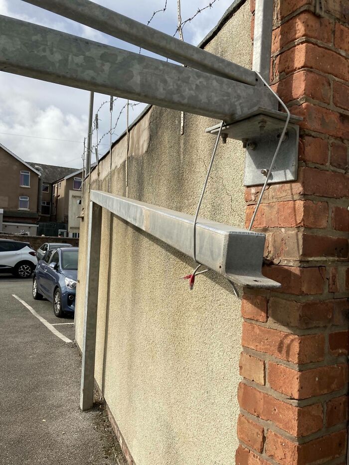 35. Złącze zabezpieczenia przed upadkiem prawie przetarte — wygląda jak celowe przecięcie?
