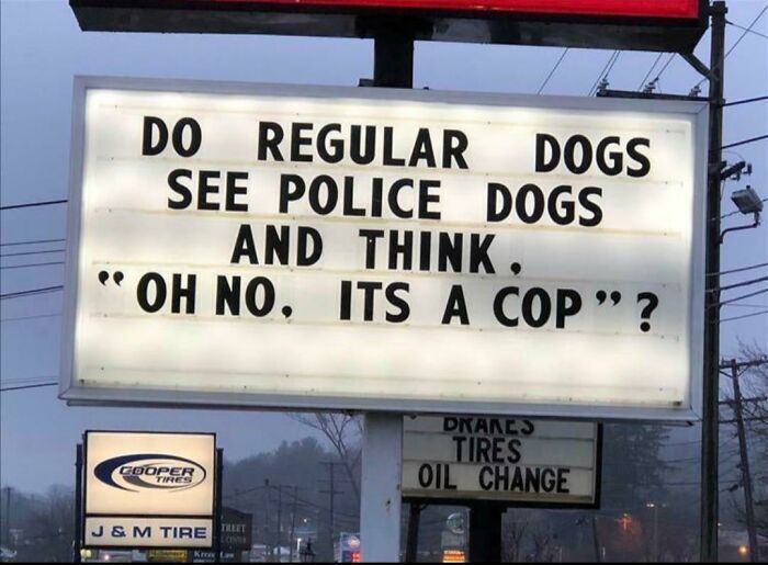 Żart przy stoliku z przyjaciółmi to jedno — wystawić go na szyldzie przy ulicy, to zupełnie inna liga. Niektórzy mają jednak i cięty dowcip, i odwagę, żeby to spróbować — i najczęściej wychodzi świetnie.