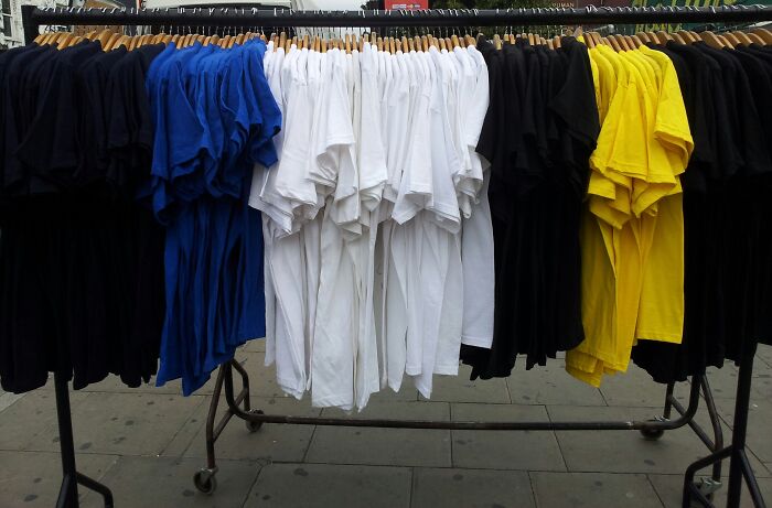 Koszulka typu T, wynaleziona w 1904 roku, była reklamowana mężczyznom, zwłaszcza kawalerom, którzy nie potrafili szyć ani naprawiać guzików — prosty produkt, sprzedany jako wygodne rozwiązanie.