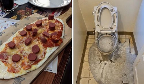 Żart przy stoliku z przyjaciółmi to jedno — wystawić go na szyldzie przy ulicy, to zupełnie inna liga. Niektórzy mają jednak…