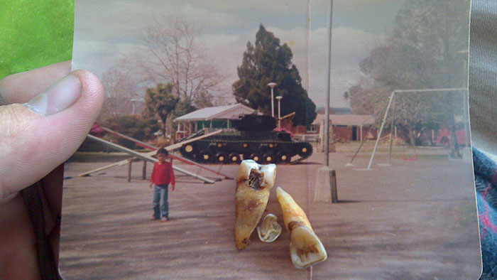 Wprowadziłem się do domu i w kuchni, w kopercie zatytułowanej „Dads 2 Sharp Teeth + Photo”, znalazłem to