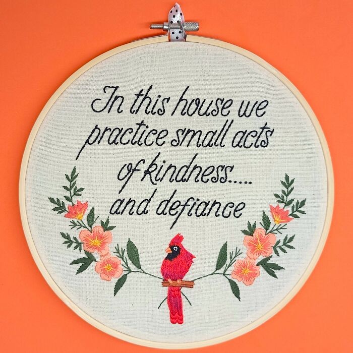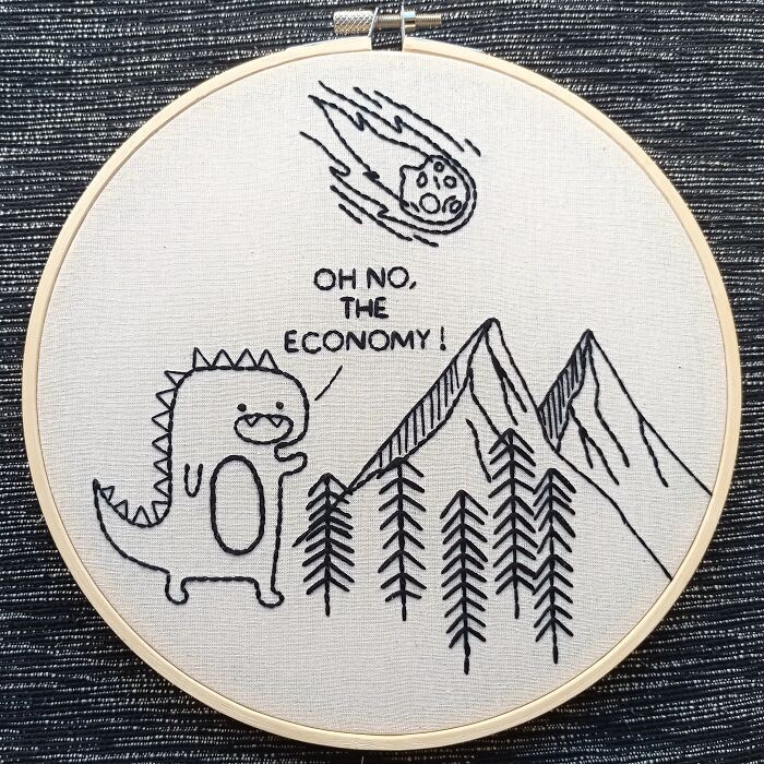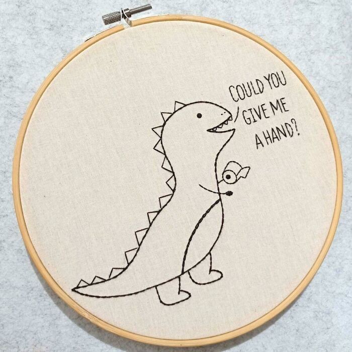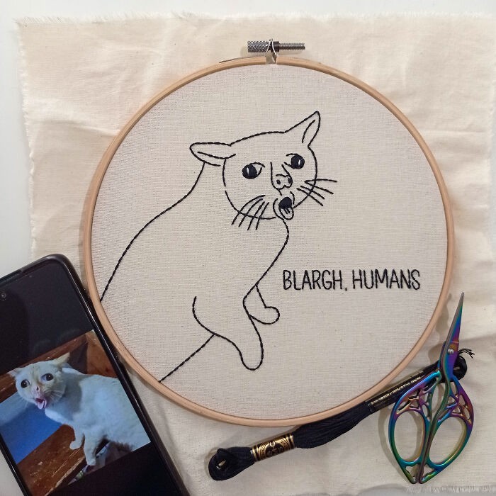 „Chcielibyśmy podzielić się serią stworzonych przez nas dzieł hafciarskich przedstawiających urocze i zadziorne zwierzęta. Niektóre z nich to dzieła w technice mieszanej: haft ręczny + akwarele! Mamy nadzieję, że wywołają uśmiech na czyjejś twarzy.” – powiedzieli artyści.