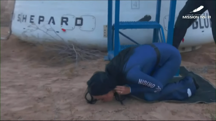 Chociaż lot Katy Perry w kosmos trwał około 4 minut, jej krytycy nie tracili czasu na atakowanie teatralności jej powrotu do domu — przede wszystkim jej pocałunku na ziemi, gdy lądowała. Niektórzy komentatorzy internetowi wyśmiewali ten gest, mówiąc: „Ona całuje ziemię, jakby nie zniknęła na dwie sekundy”.