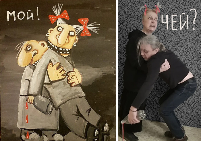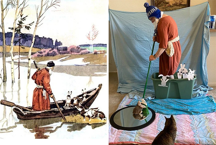 W tej grupie na Facebooku Rosjanie świetnie się bawią, wcielając się w role bohaterów dzieł sztuki — już powstało wiele zabawnych i pomysłowych reinterpretacji. To przypomina wyzwanie, które kilka tygodni wcześniej ogłosiło Getty Museum w Los Angeles, a które także przyniosło świetne efekty.