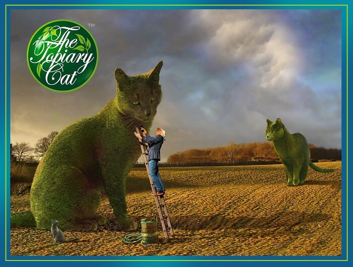 Tęsknota za zwierzęciem to coś, co wielu z nas dobrze zna. Richard Saunders również to czuł po stracie kota, Tolly’ego. Aby Tolly’ego mieć blisko siebie, stworzył surrealistyczny i zabawny projekt o nazwie „The Topiary Cat”, w którym rośliny i krzewy wyglądają dokładnie jak jego kot w różnych miejscach.