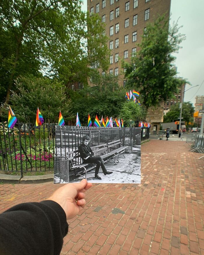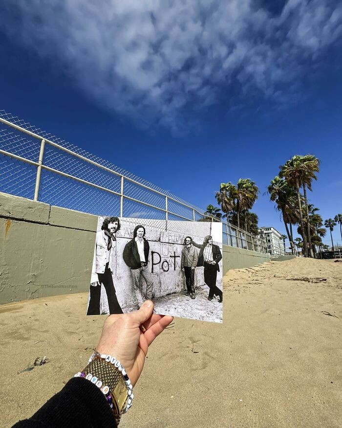 Steve Birnbaum, twórca „The Band Was Here”, nauczył się sztuki łączenia historii z teraźniejszością. Na swoim Instagramie zestawia kultowe okładki albumów, zdjęcia z filmów i rzadkie zdjęcia fascynujących osobowości z dokładnymi miejscami, w których zostały pierwotnie zrobione. Rezultatem jest uderzająca wizualna podróż w czasie, która pokazuje, jak bardzo — lub jak mało — zmieniły się te miejsca.