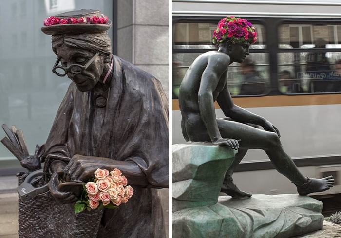 Geoffroy Mottart jest belgijskim artystą i florystą, który w zaskakujący sposób dodaje koloru i życia ulicom miasta. Umieszcza świeże kompozycje kwiatowe na starych publicznych posągach, nadając im brody, korony i inne kwiatowe detale, które wyróżniają się w miejskim otoczeniu.