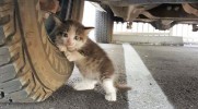 Wystraszony kociak odnaleziony pod ciężarówką zdobył serce swojego wybawcy.