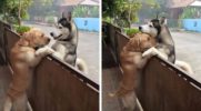 Samotny psiak opuścił przydomowy ogród, by za wszelką cenę uściskać swojego najlepszego przyjaciela.