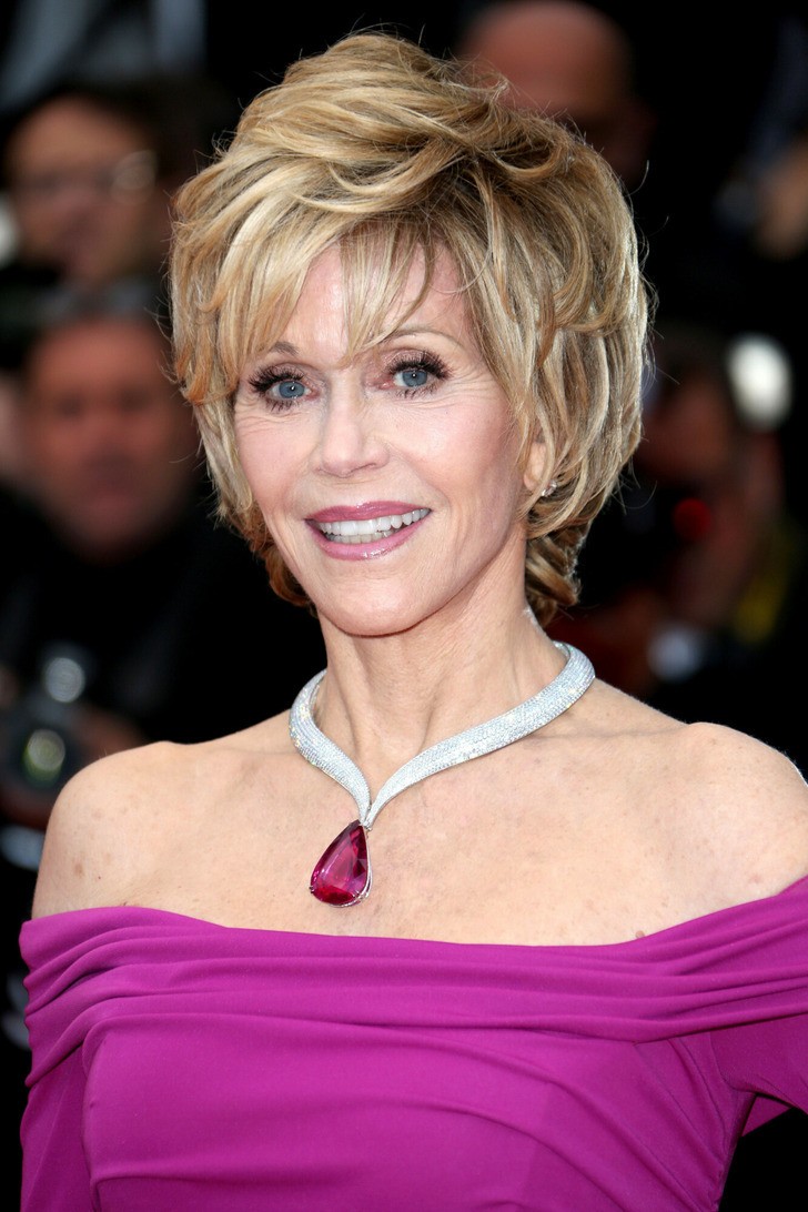 Fonda wyglądała na pewną siebie, szczęśliwą i pełną energii, gdy machała do tłumu i pozowała do zdjęć. Później pojawiła się na ceremonii rozdania nagród L’Oréal Light on Women Award, tym razem w białej sukni z materiału przypominającego ręcznik, z miękkimi poduszkami na ramionach i srebrnymi sandałami.