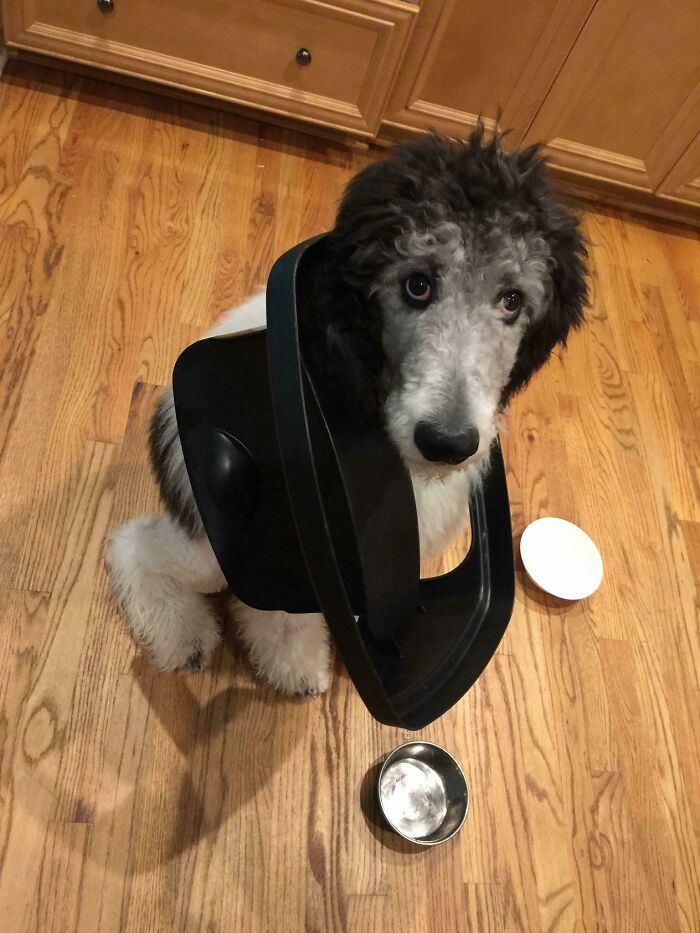 Psy, z całym swoim entuzjazmem, często kończą utknięte, bo podejmują decyzje bez cienia wątpliwości. Kot może się zastanowić; pies wskoczy w to bez namysłu — ten prześwit w płocie? Złoty retriever spróbuje. Zabawkę dziecka? Owczarek włożą głowę bez zastanowienia.